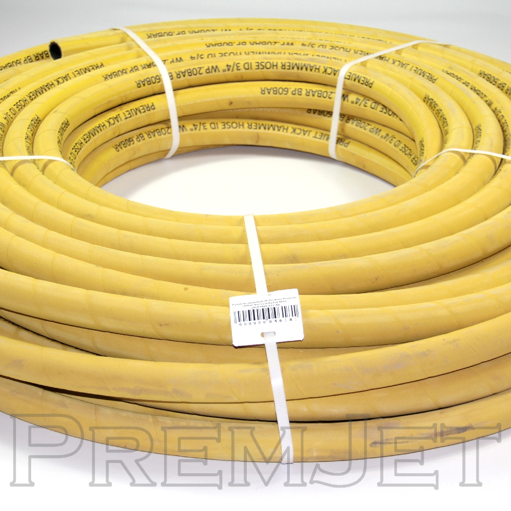 Рукав воздушный Ø19х29мм PremJet (20bar/желтый/бухта 50м) армированный нитью ПВХ шланг для подачи воздуха от компрессора к абразивоструйной установке. Максимальное рабочее давление 20bar.